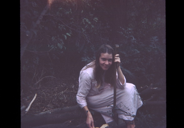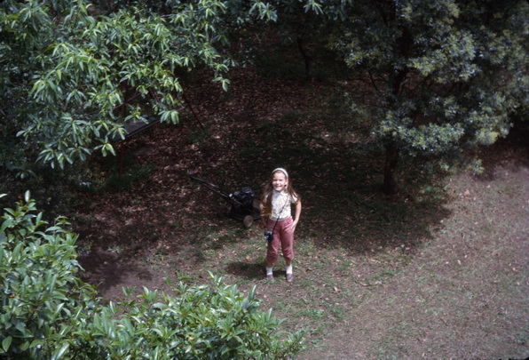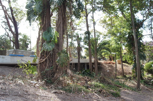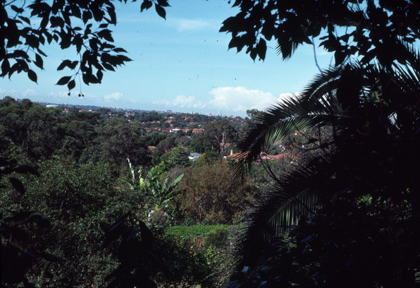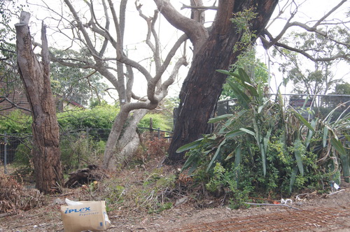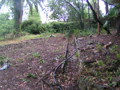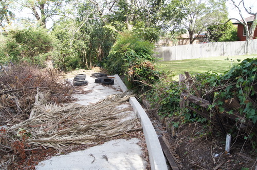 | The bottom path and the gully, note palm tree on right hand side. The palm tree once dwarfed by a massive camphor laurel is now overshadowed by "the Road" | ![]() |