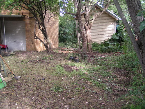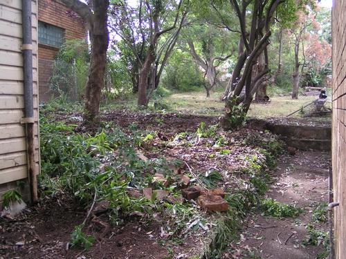 | The side lawn, shady nook. | Bare earth, to disappear under a "modern" pretention for a home. |