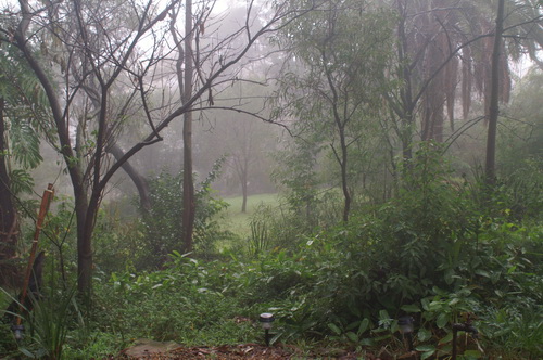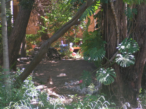 | The back deck and Hendo's house hidden behind the frangipani, and then .. nothing. | |
