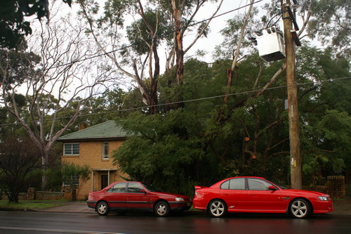 In 2008 the Electricity mob needed to prune the trees next to the sub-station, by then the lowest branch of the gum tree spead over the roof of the house. |