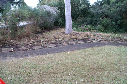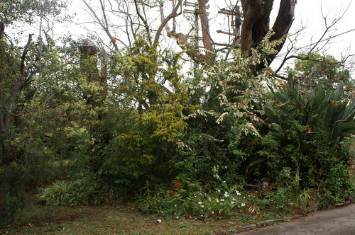 | The top path, home to clivia and assorted herbaceous evergreen plants. | Another barren wasteland. |
