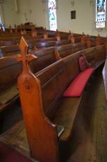 I cunningly arrived at 5 to 11 to avoid the service. The minister came out first and I chatted with him and checked it would be OK to take some photographs inside. There were many Badger and Mellor names on plaques and windows. As I was coming up the aisle to the last window a lady was going down and inquired as to my purpose, I explained that I was a Badger and a man a bit further up the aisle spun around and descended on me. "Mrs Badger sat in this pew here" he said pointing out her seat, " I know because I sit right here behind her and she has had to put up with my singing for forty years". The pews are all numbered so imagine my surprise when I saw that her pew number was 56. ( the number of our house in Epping Ave. and also the range of numbers visible when visiting Uncle Bill).