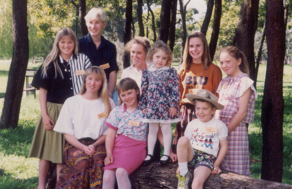 We had 13 in the car that day. The 6 Worthleys, front left, the 6 Badgers & Cousin Jean, front right. |